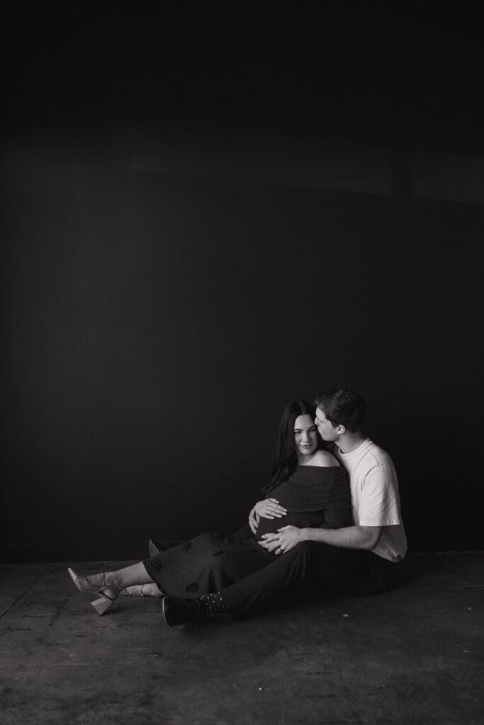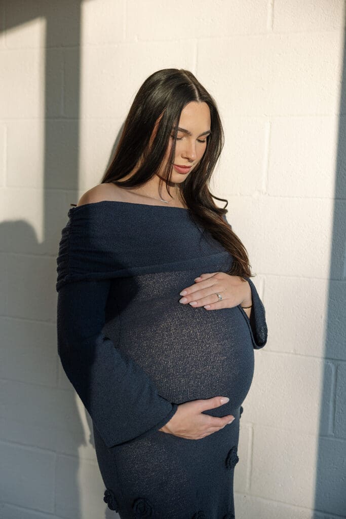 We wanted this session to feel timeless, and elevated, and this space delivered it all. The soft natural light pouring through the windows, and neutral tones created the perfect backdrop to highlight every detail. Studio maternity sessions have a way of removing all the noise and putting the focus back on what matters most!